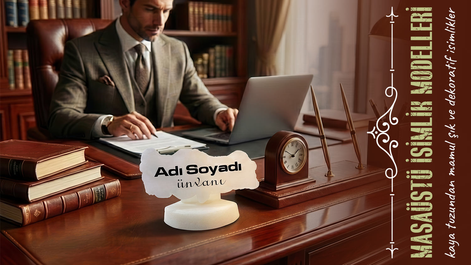Bu kategoride yer alan kaya tuzundan masaüstü isimlik modelleri, Türkiye haritası formunda hazırlanır. Saatli ve saatsiz seçenekler sayesinde farklı kullanım beklentilerine çözümler sunar. Saatli masaüstü isimlik modelleri zamanı kolayca takip etmeyi sağlarken, saatsiz kaya tuzu isimlik seçeneği daha sade bir görünüm isteyenler için tercih edilir. Tüm modellerde kaya tuzunun yüzeyi korunur, kaplama ya da boya uygulanmaz.